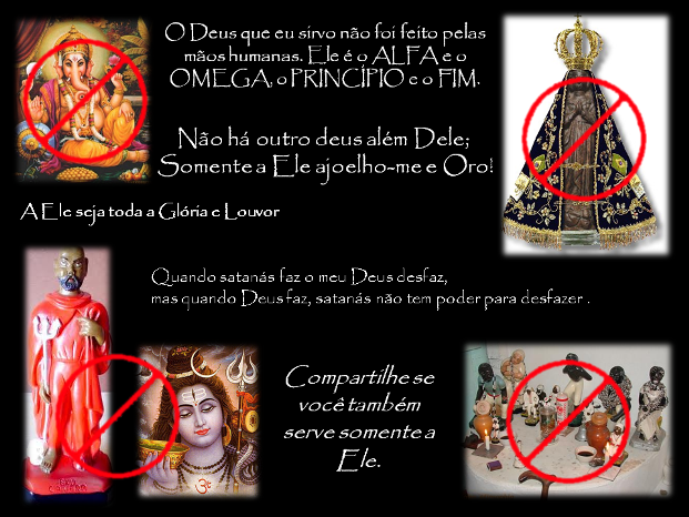 A palavra de Deus proíbe ter, fazer, se encurvar ou servir a imagens. Seja de semelhança de coisas da terra ou do céu. Quando a pessoa conversa com uma imagem, canta, faz pedidos e promessas ele está adorando a esta imagem.